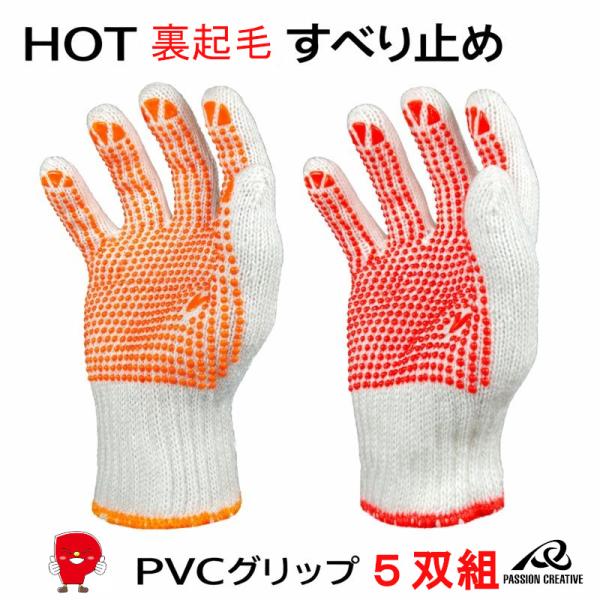 勝星産業 HOT裏起毛すべり止め手袋 H845 5双組 防寒 7ゲージ厚手 裏起毛 PVCグリップ 冷凍庫作業 除雪 M/L