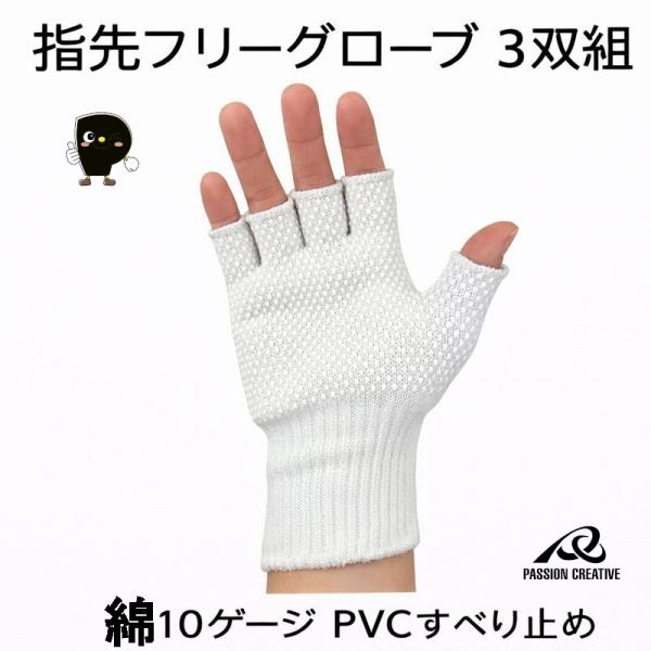 勝星産業 指先フリーグローブ W160 3双組 指切り手袋 綿10ゲージ PVCすべり止め 通気性 吸汗 軽作業 梱包 仕分け