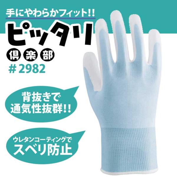 ソフトウレタン手袋 作業用 滑り止め 背抜き手袋 ピッタリ倶楽部 1双組 2982 薄手 ウレタンコーティング ウーリーナイロン 柔らかい 通気性 作業手袋 川西工業