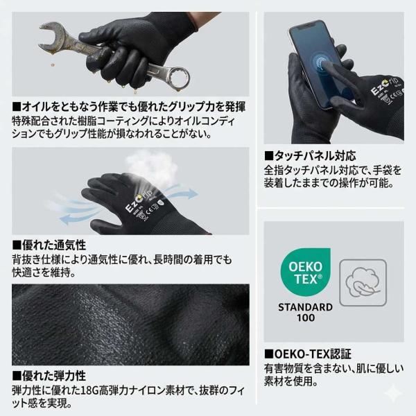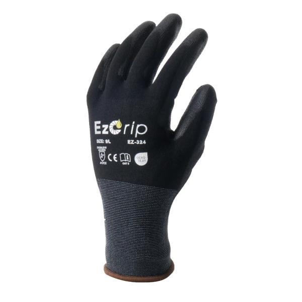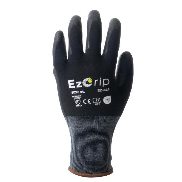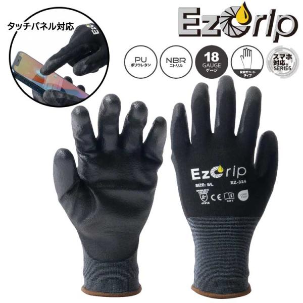 ゴム手袋 耐油 背抜き スマホ対応 ニトリル手袋 EZ-324 EzGrip イージーグリップ 通気性 18ゲージ 18G タッチパネル対応 黒 作業用 カヴァーワーク COVER WORK