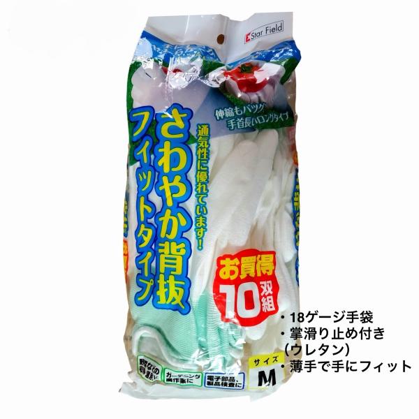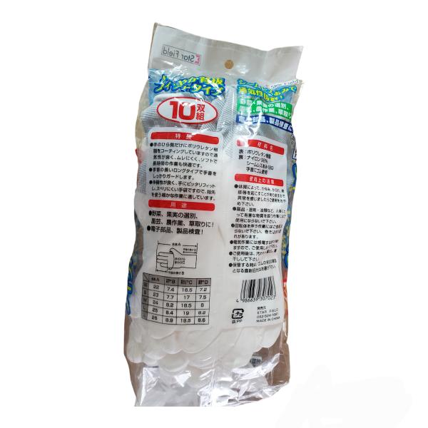 作業用手袋 ウレタン背抜手袋 10双入 さわやか背抜 フィットタイプ 薄手 農作業 物流業 組立作業 品質管理用手袋 滑り止め