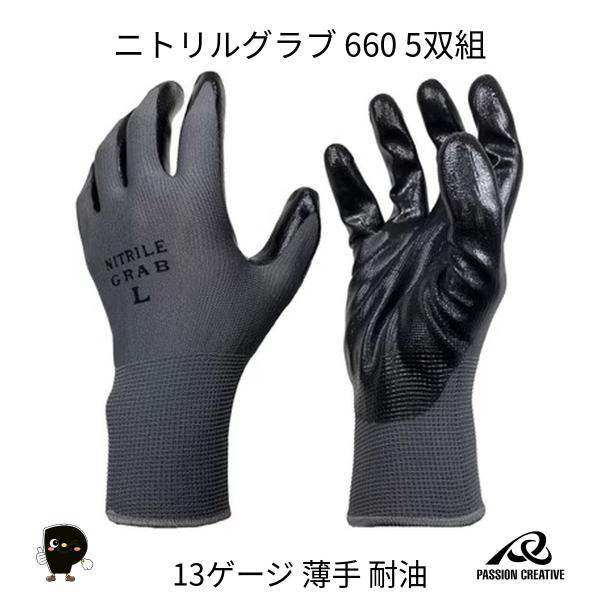 勝星産業 ニトリルグラブ 660 5双組 13ゲージ 薄手 ニトリルゴム 耐油 耐摩耗 作業手袋 グレー M/L 機械整備 建築 土木 運送