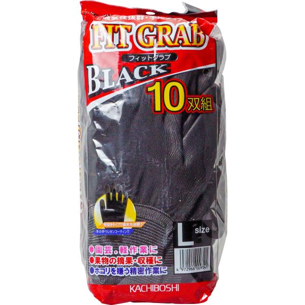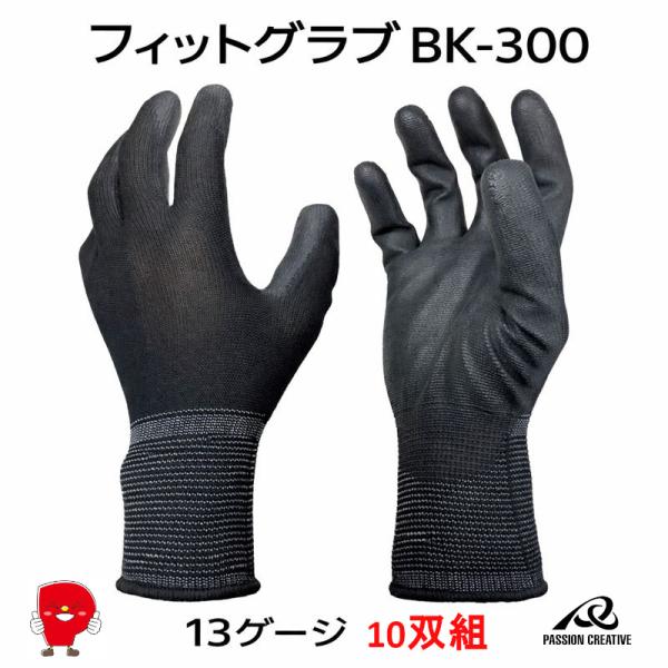 勝星産業 フィットグラブ BK-300 10双組|13ゲージ 薄手 ブラック ポリウレタンすべり止め 高伸縮 作業用手袋