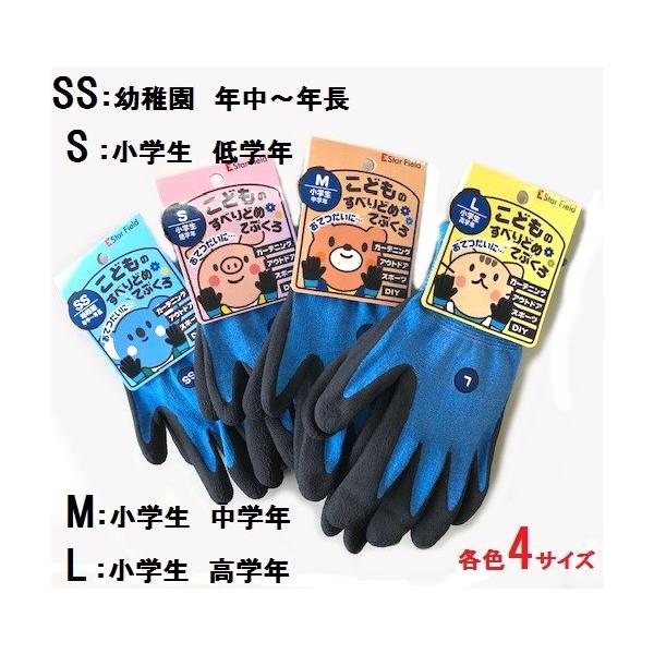 子ども手袋 #3068|滑り止め付き 背抜き手袋 幼稚園児〜小学生対応 ガーデニング・アウトドア・作業用(ピンク/ブルー 2色×4サイズ)