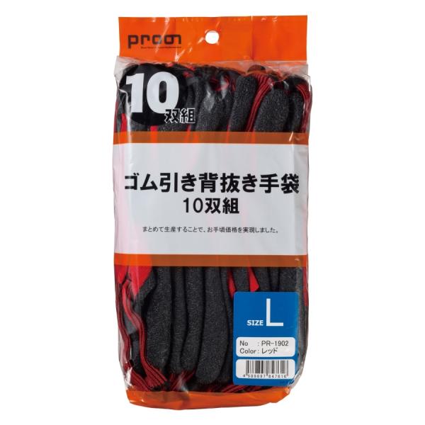 「プロノ」ゴム引き背抜き手袋10双組/PR-1902 作業用 滑り止め すべり止め グリップ