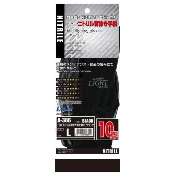 13Gニトリル背抜き手袋10P A-386 10双組
