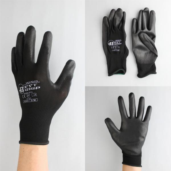背抜手袋 作業用手袋 作業手袋 薄手 グリップ ウレタン 滑り止め 手袋 BEST GRIP PQ302 3双 背抜き手袋 ベストグリップ ハンボ 黒 男性用 女性用 おしゃれ