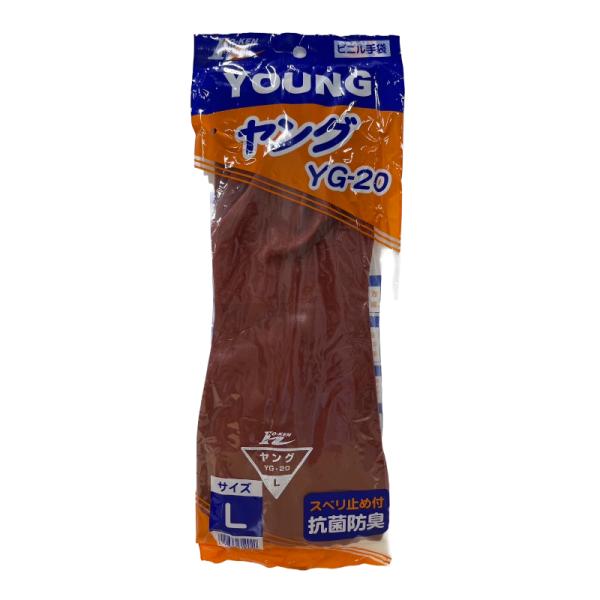 ビニール手袋 ホーケン ヤング YG-20 1双 ビニール厚手 すべり止め 抗菌防臭 34cm