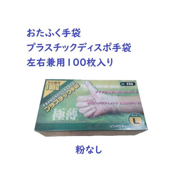 おたふく手袋 No.255 プラスチックディスポ手袋 左右兼用100枚入り 極薄 粉なし