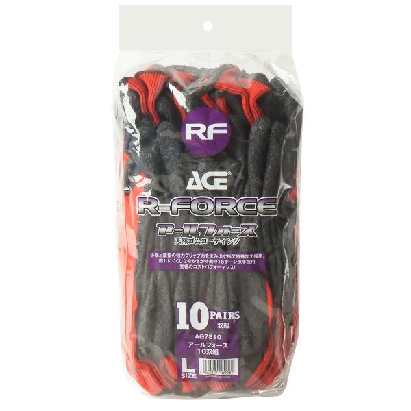 エースグローブ 天然ゴム背抜き手袋 レッド 10双組 アールフォース AG7810