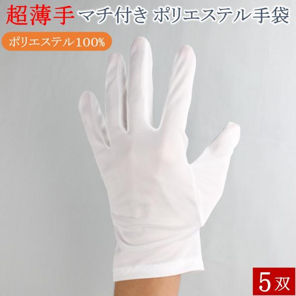 ポリエステル 白手袋 マチ付き 立体縫製 品質管理用 手袋 5双 薄手 ウインセス タクシー ドライブ 作業 買い物 運搬 掃除 清掃 メンズ レディース おしゃれ
