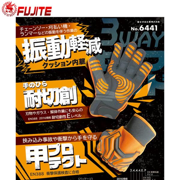 富士手袋 3WAYセーフハンド 6441 耐振動!耐切創EN388 2016規格Eレベル 甲プロテクト