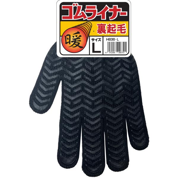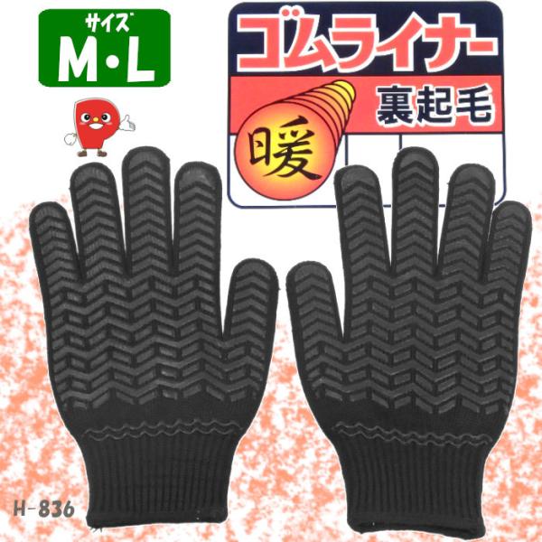 防寒手袋 HOTゴムライナー 手袋 グリップ力 耐久性 天然ゴム ゴムライナー 裏起毛 吸汗性 作業用手袋 ブラック 送料無料!メール便対応となります H836
