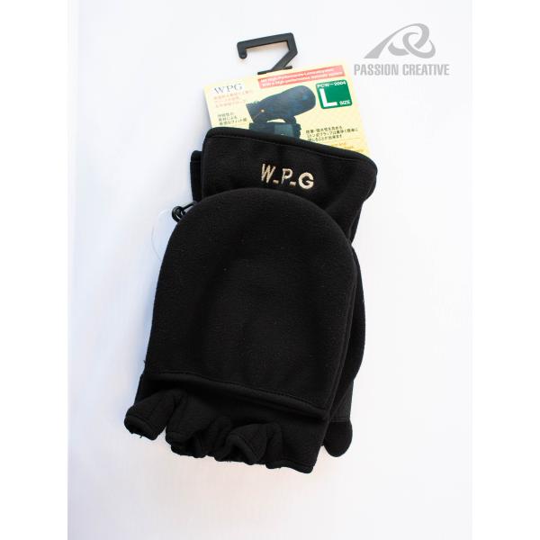 ミトン手袋 指だし切替 フリース 防寒 撥水 透湿 滑り止めPVC 作業用 グローブ ブラック M/L PCW-2004