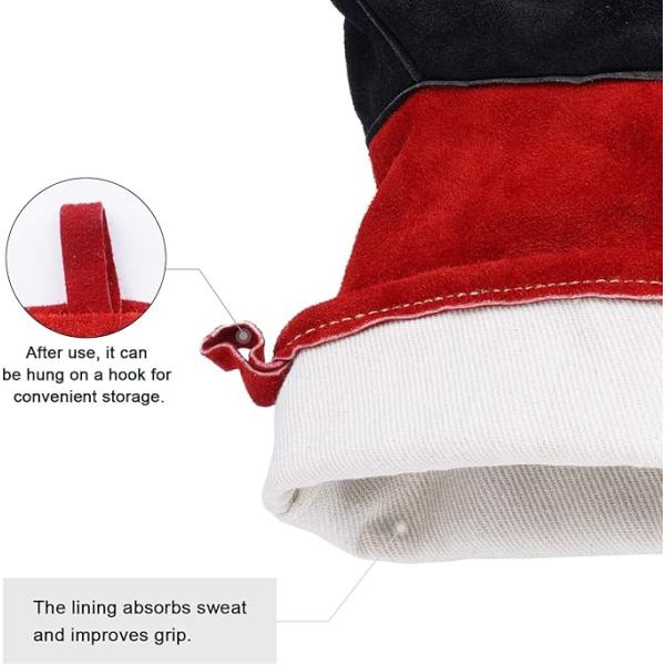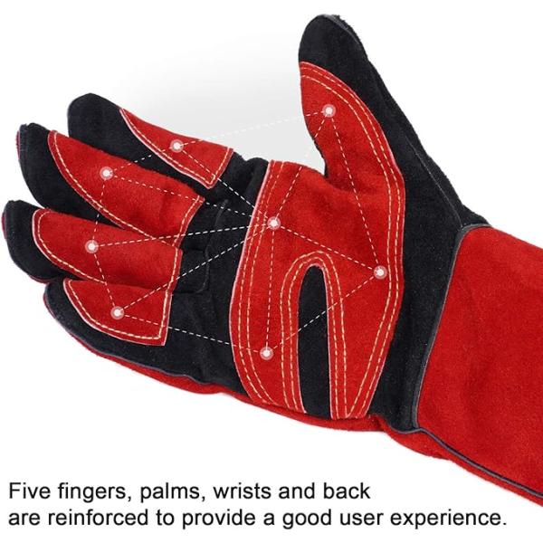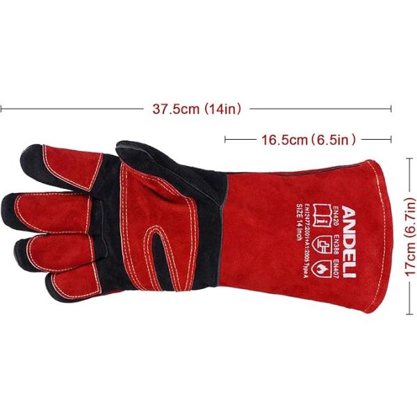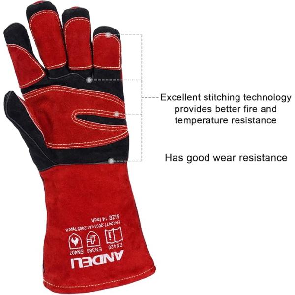 ANDELI 溶接手袋 耐熱グローブ レザー MIGグローブ 厚手で柔らかく 耐熱性に 二重牛革グローブ 溶接作業用 鍋つかみ 焚き火台 アウトドア用 Red-Black