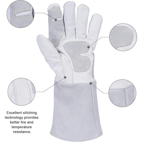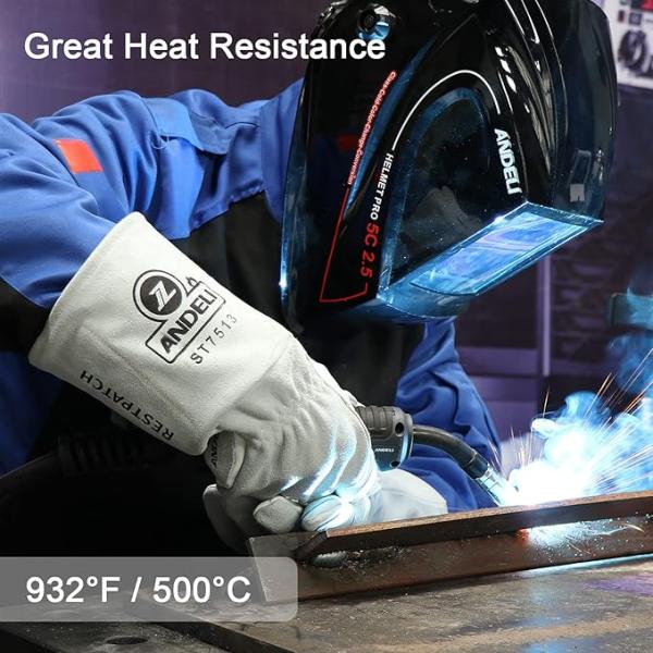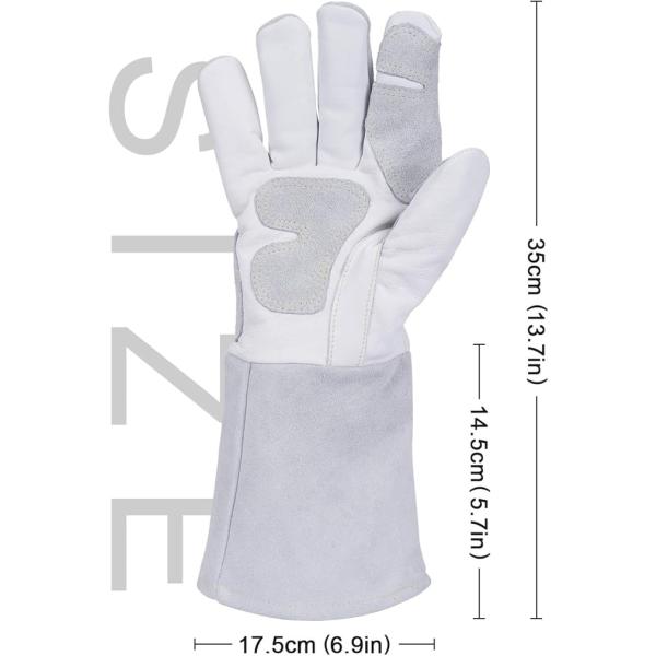 ANDELI 溶接手袋 耐熱グローブ レザー MIGグローブ 厚手で柔らかく 耐熱性に 二重牛革グローブ 溶接作業用 鍋つかみ 焚き火台 アウトドア用 ホワイト