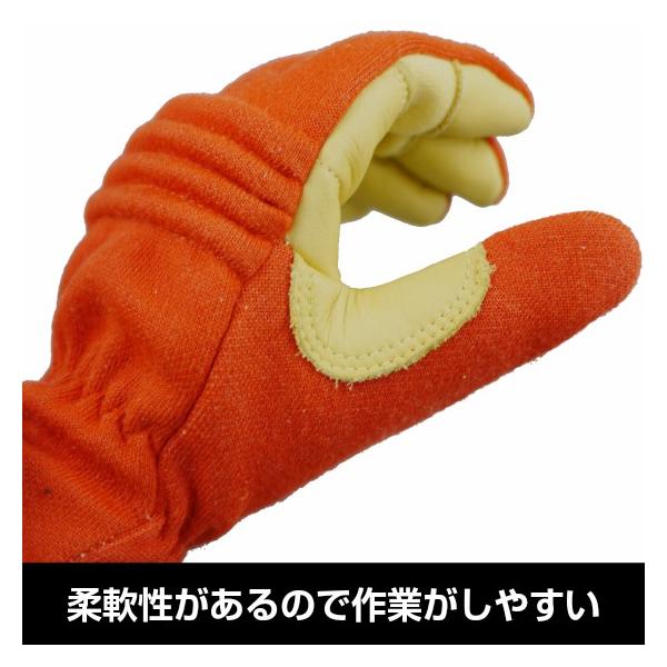 【メール便OK185円/2双まで】アラミドなのに抜群の柔軟性【KO-212 オレンジ】ケブラー 消防 災害 耐熱 耐切創 作業用 消防団 消防手袋 訓練/救助