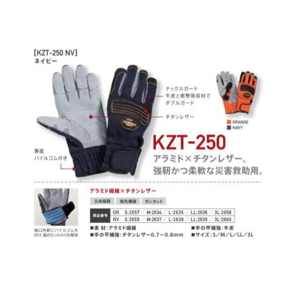 耐衝撃手袋 耐切創グローブ PROHANDS KZT-250 災害救助用手袋 手の平全面チタンレザーで補強、ナックルガードも装備した救助用 プロハンズ S 女性 3L 特大