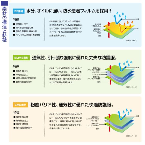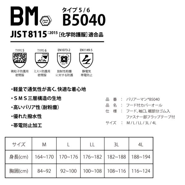 化学防護服 1着 バリアーマン B5040 SMS素材 つなぎ ファスナー部フラップテープ付 JIST8115適合品