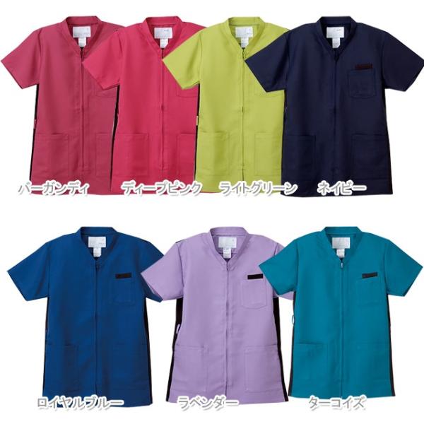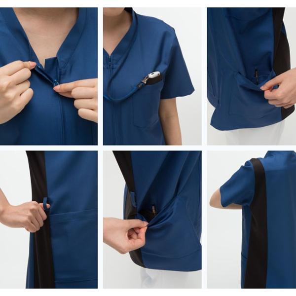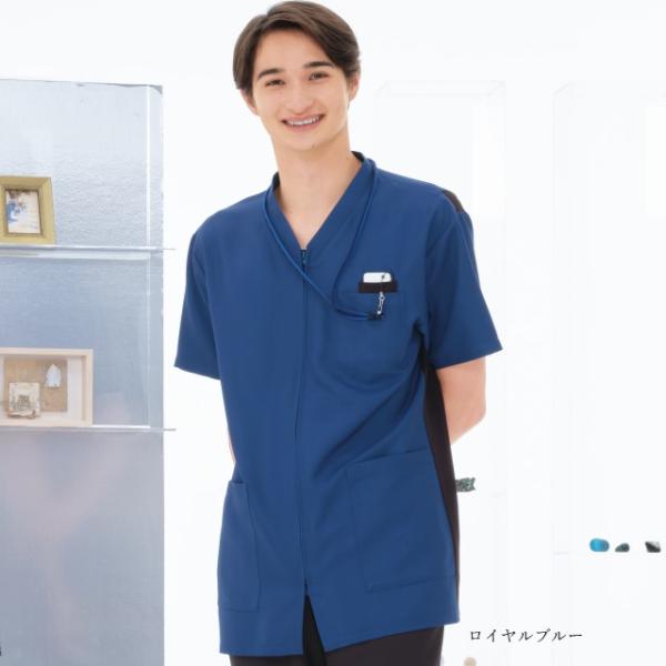 RT5072 ナガイレーベン スクラブ 白衣 医療 男女兼用 ナースウェア 半袖 PHSポケット 前ファスナー 涼感機能 吸水 防汚