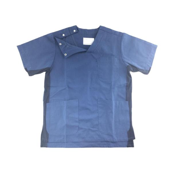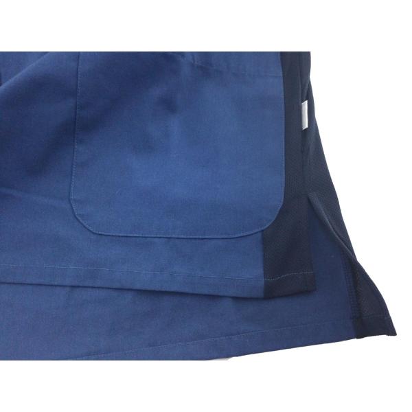 コットンブレンドスクラブ ムレ対策 サイドメッシュ切替 男女兼用 医療用 看護師 Sサイズ グレイッシュブルーxネイビー 送料250円
