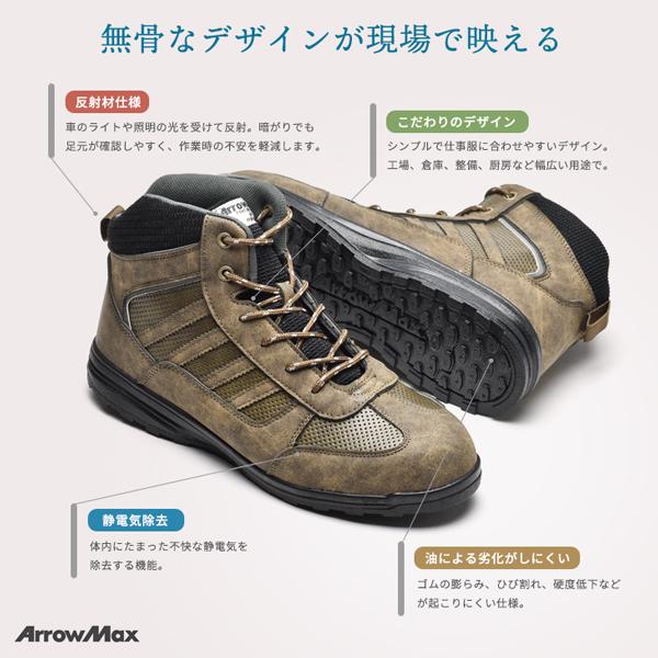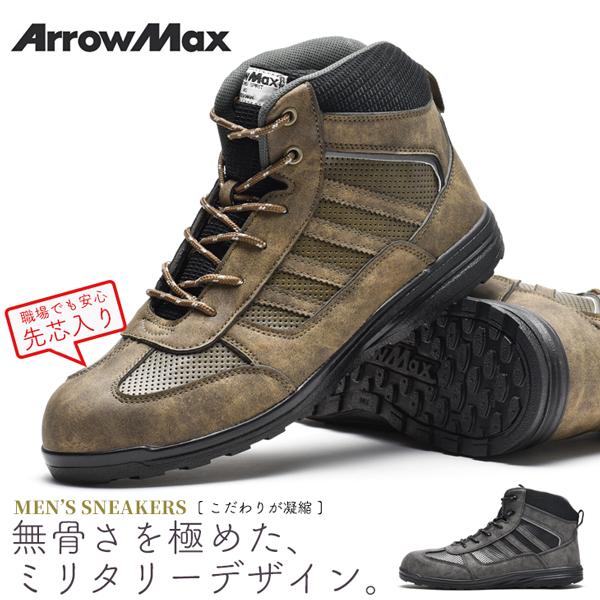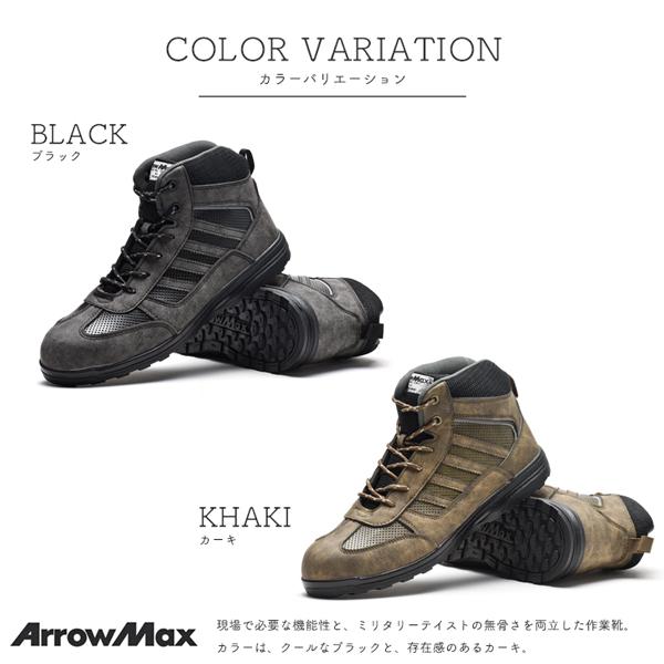 ワークシューズ メンズ 安全靴 先芯入り 作業靴 スニーカー 耐油 ミドルカット 作業用スニーカー アローマックス #69