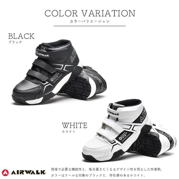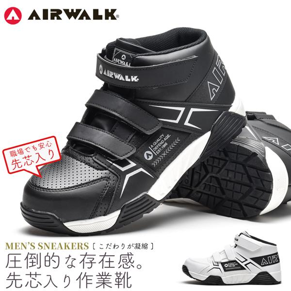安全靴 メンズ 作業用 スニーカー ハイカット シューズ 靴 先芯入り 作業靴 衝撃吸収 ブラック ホワイト AIRWALK