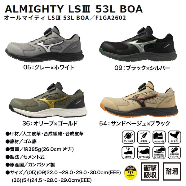 ミズノ 安全靴 BOA F1GA2602 オールマイティ LSIII 53L ダイヤル 作業靴 MIZUNO ENERZY搭載 高反発ソール 衝撃吸収 スリム設計 軽量 2026 新商品