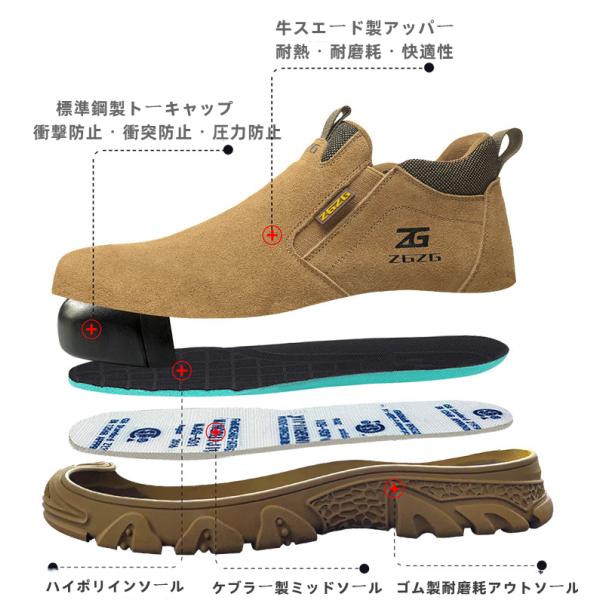 スリップオン式 牛革製 メンズ用 安全靴 衝撃・踏み抜き防止 / ローカット / 耐磨耗性 / 溶接スパーク・高温飛沫対策 / 作業用防護靴