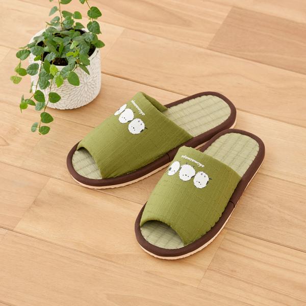 雪の妖精 シマエナガ 快適い草スリッパ グリーン L 春夏 い草 スタンダード スリッパ シマエナガ 室内用 ルームシューズ 室内履き おしゃれ Eclea 爆売 爆買