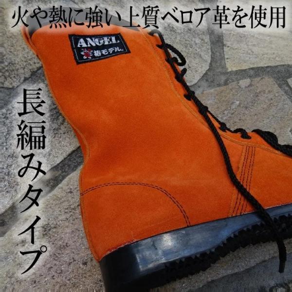 椿モデル エンゼル ANGEL 安全靴 高所作業靴 本革JIS規格 ベロア革 CHS58OR オレンジ 長編みひもタイプ ロング 25~28cm