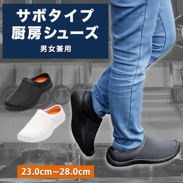 コックシューズ キッチンシューズ サボタイプ サボ サンダル 厨房靴 黒 白 安い 耐油性 飲食店 キッチン ホール 丸洗い スリッポン