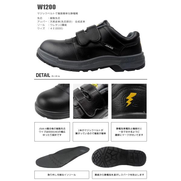 【優良配送】 安全靴 セーフティーシューズ ジーデー JSAA A種 樹脂先芯 静電靴 ローカット マジックテープ 静電気帯電防止 女性用 レディース対応 W1200@