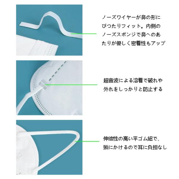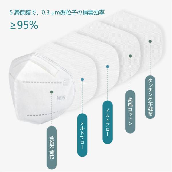 即納 N95マスク ホウイト 個包装 50枚入 KN95同等 mask 高機能 5 層構造 3Dマスク 男女兼用 大人 マスク 防護マスク CE FFP2認証 済 PM2.5微粒子 不織布マスク