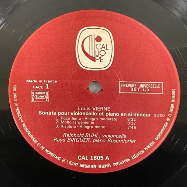 仏CALLIOPE CAL1805 ラインホルト・ブール VIERNE LALO CHAUSSON 洗浄済 LP