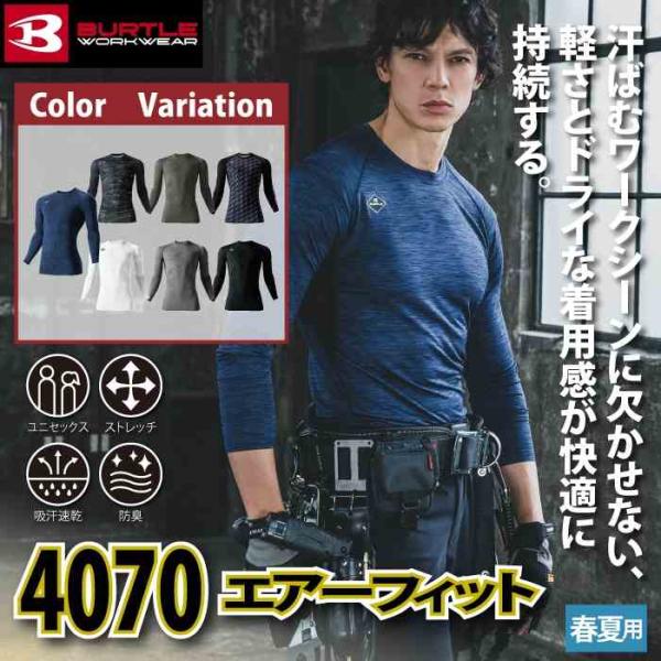 バートル BURTLE 作業着 インナー 2025モデル 4070 エアーフィット S-XXL 作業服 おしゃれ ドライ シャツ