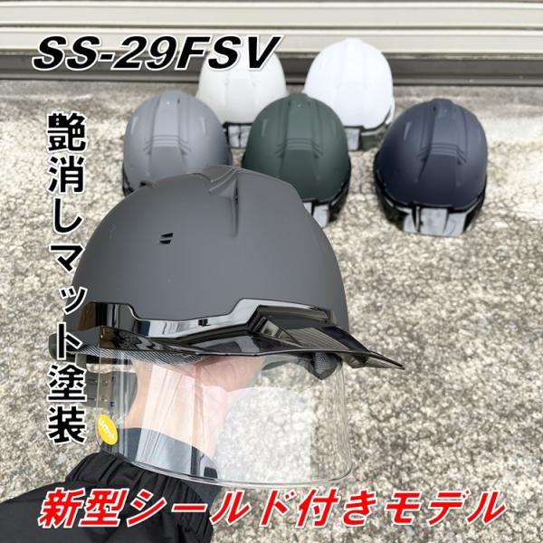 【シールド付きマット塗装】シンワ Shinwa ヘルメット SS-29FSV シールド付き 艶消し スモークバイザー 進和化学工業 ※一部埼玉ワールドマストオリジナル色