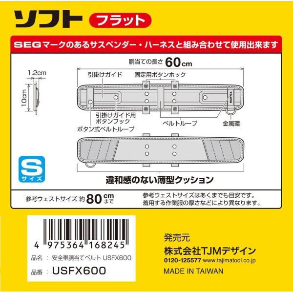 S在庫あり Tajima タジマ SEG 胴当てベルト ソフト/フラット USFX600/700/800 S/M/L
