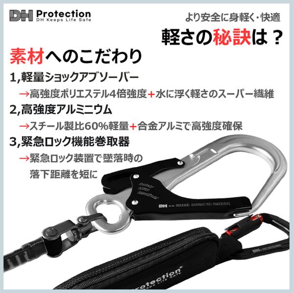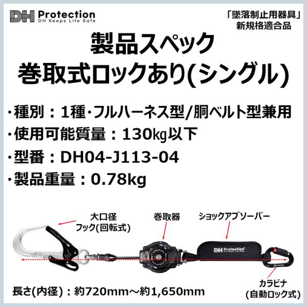 ExAir軽量ロック巻取式ランヤード130kgシングル 1種 フルハーネス兼胴ベルト型 DH04-J113-04(S) DH Protectionジャパン製 墜落制止用器具 新JIS試験合格品