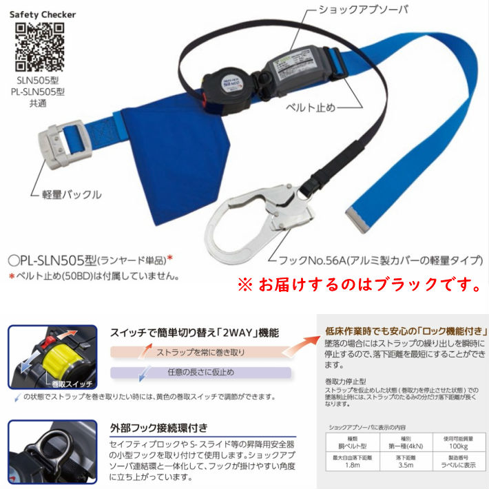 TITAN 胴ベルト型 墜落制止用器具 リーロック S2NEOライト Mサイズ 黒 ベルト長さ120cm SLN505-BL-BP【ブラック サンコータイタン 胴ベルト 安全帯】