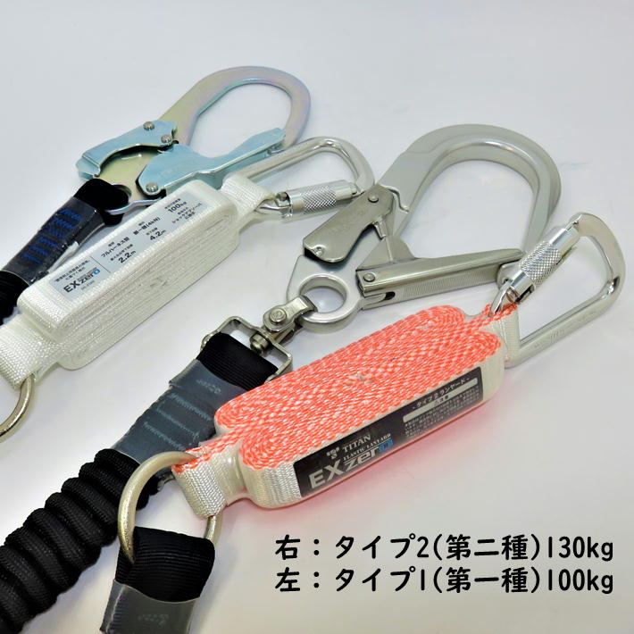 タイタン タイプ2 伸縮ストラップ式 ツイン ランヤード HL2-ZCW-UJ-130【第二種 安全帯 蛇腹 ハーネス TITAN サンコータイタン 】