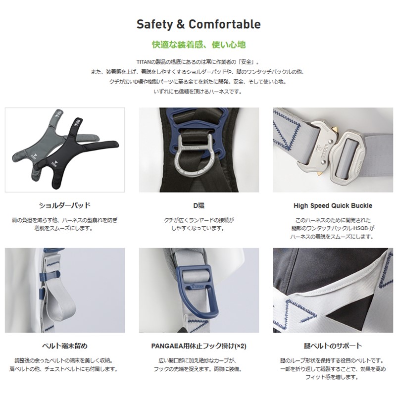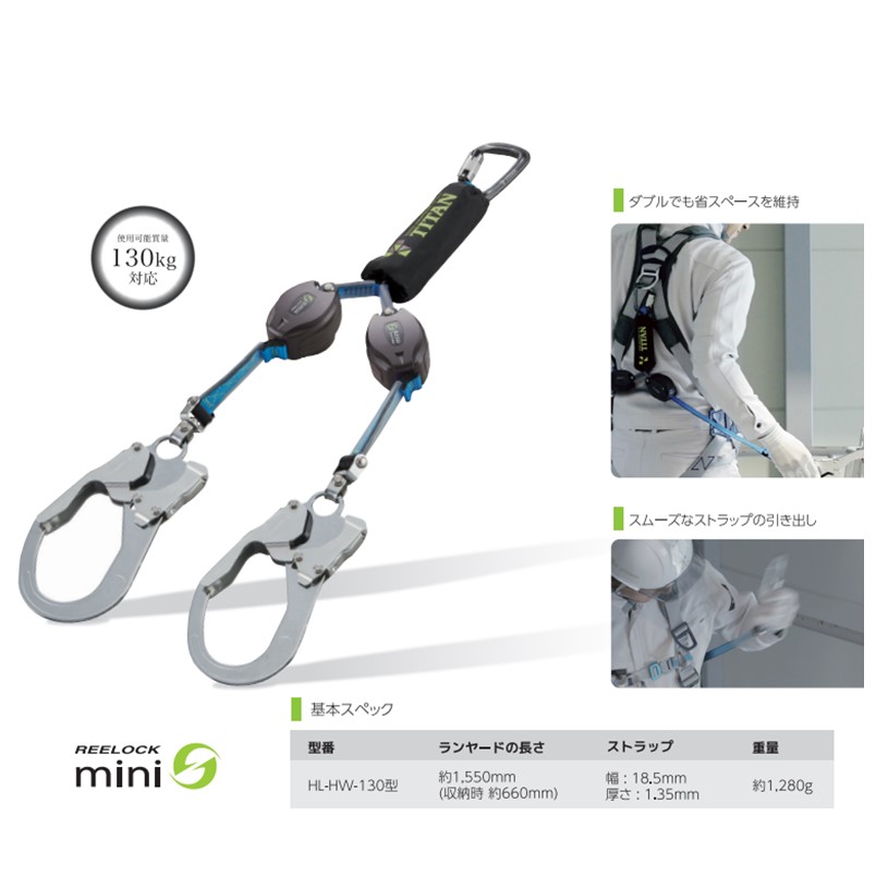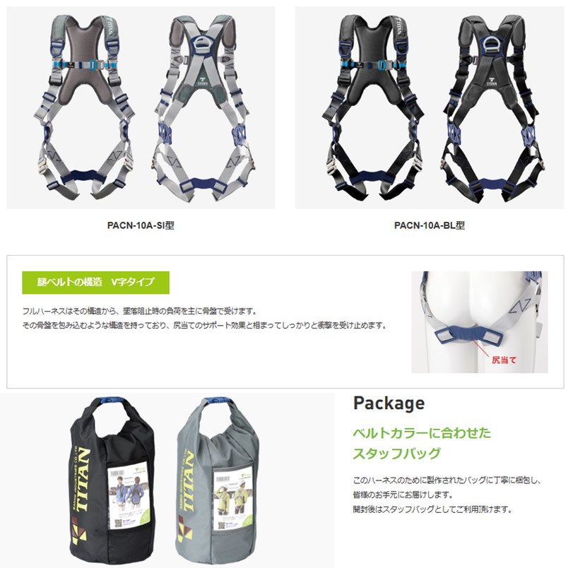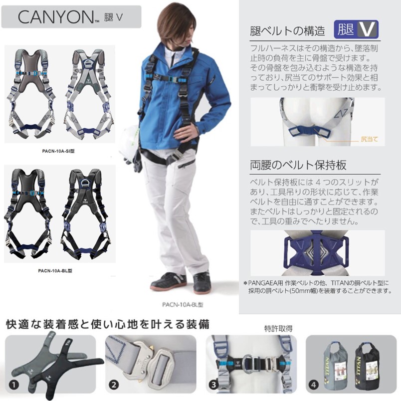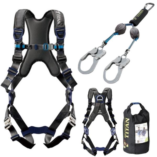 タイタン フルハーネス 巻取 ダブルランヤード セット ブラック PACN-10A-BL型+HL-HW-130CC【腿V字 タイプ1 巻取 サンコー パンゲア リーロック ハーネス】