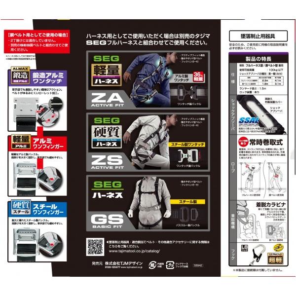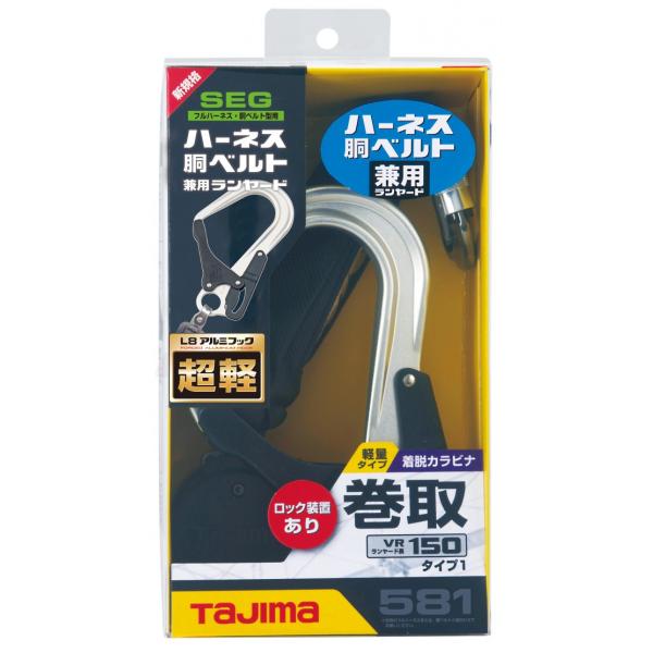 TJMデザイン ハーネス用・胴ベルト用兼用ランヤードVR150LシングルL8 A1VR150L-L8