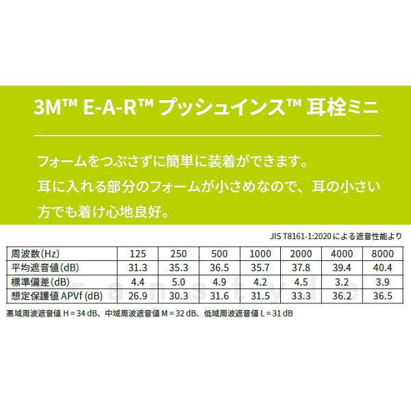 耳栓 3M プッシュインスミニ (1組) 318-1000 正規品 スリーエム (遮音値28dB) 睡眠 聴覚過敏 騒音 防音 イヤーマフ いびき 勉強 集中 メール便対応