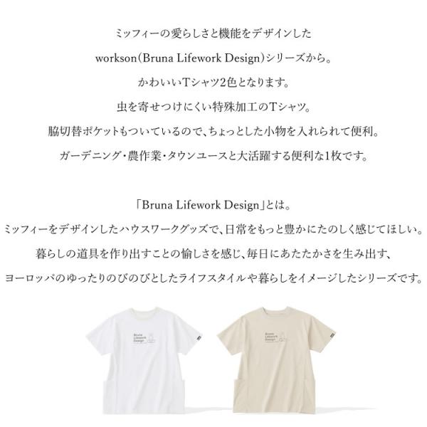 ミッフィー miffy Tシャツ 半袖 防虫 脇切替 ポケット付き ガーデニング 農作業 Workson Bruna Lifework Design 95187 【母の日】 (1枚までネコポス)