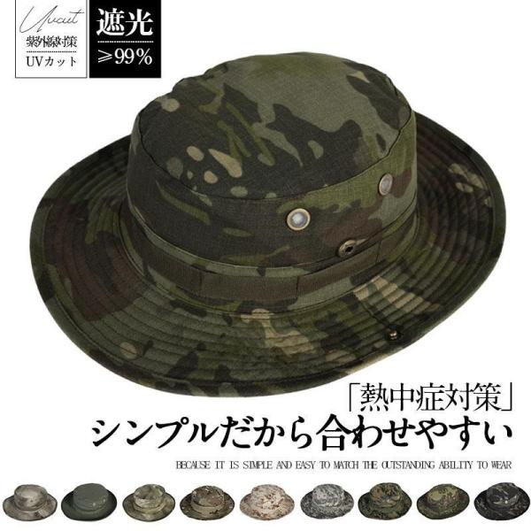 農作業用日よけ帽子 サファリハット 帽子 メンズ 熱中症対策 UVカット 野外 迷彩 カモ柄 紐付き ハット 夏 つば広 アウトドア ガーデニング