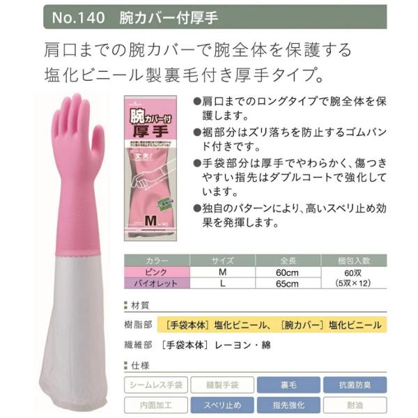 SHOWA No.140 腕カバー付手袋 作業用手袋 ゴム手袋 厚手 1双組 ショーワ グローブ 指先強化 滑り止め M L NO 140 腕カバー 腕カバー付 手袋