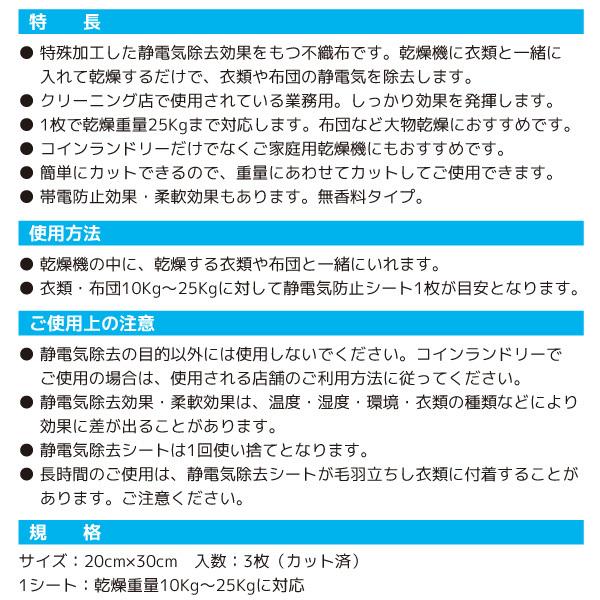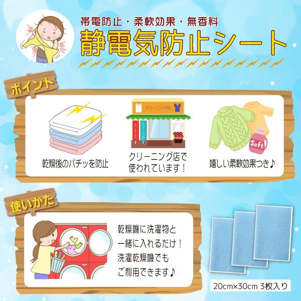 静電気防止シート3枚入 帯電防止・柔軟効果 6個まで【メール便OK!】乾燥機での静電気防止 コインランドリーに最適