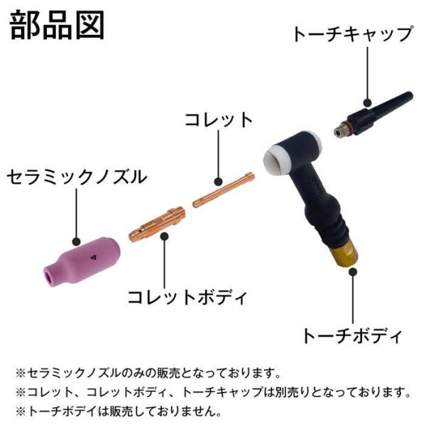 セラミック ノズル 5個 セット TIG 溶接機 #4 10N50互換 溶接 先端 スペア トーチ No4 1.6mm 内径6.4mm 4番 消耗品 DIY