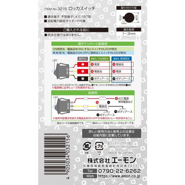 エーモン(amon) ロッカスイッチ ON-OFF DC12V・15A 発光色:アイスブルー 3215 12V・15A/アイスブルー ロッカタイプ